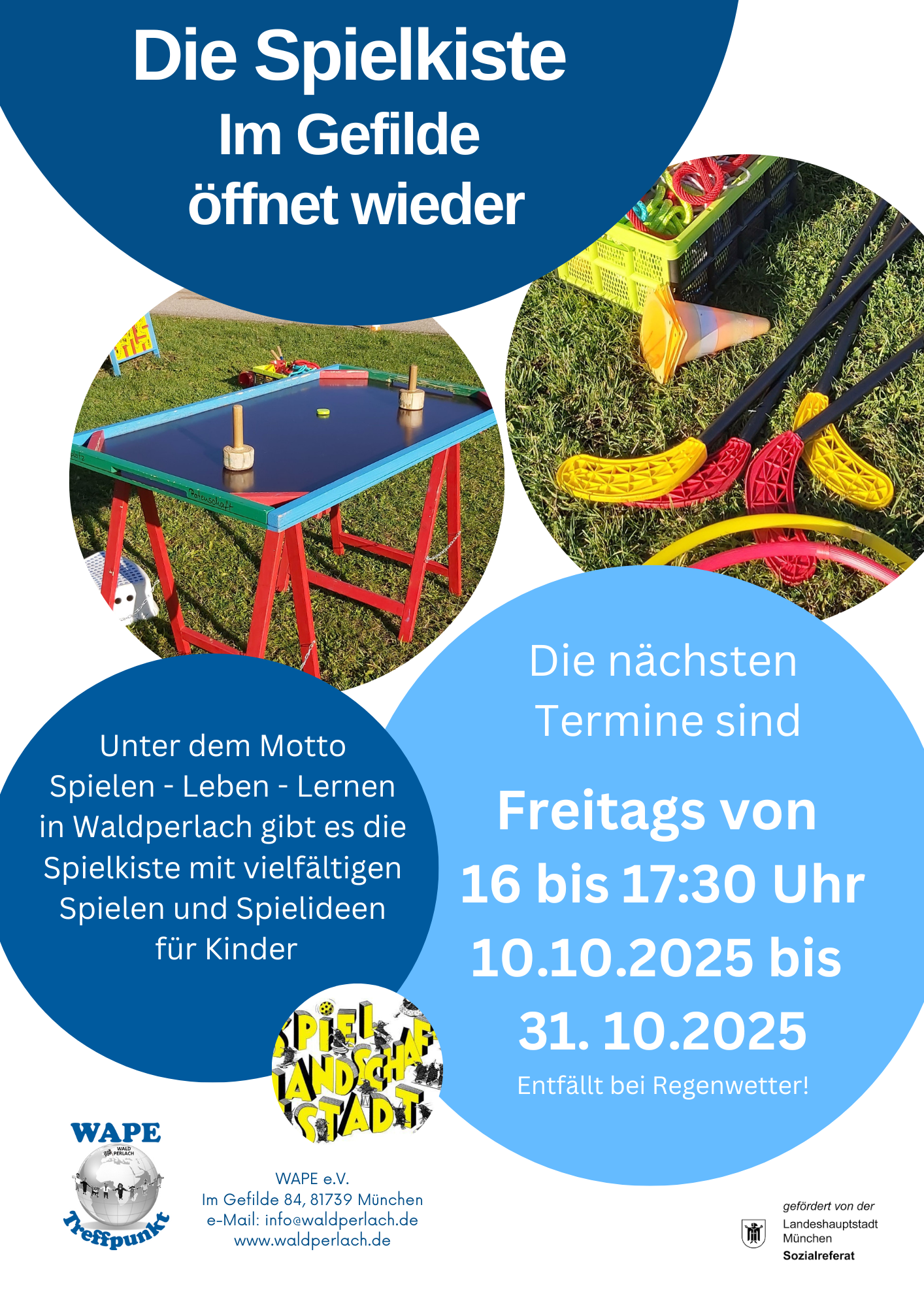 Jeden Freitag öffnen für dich die Spielplatzpaten der WAPE die Spielkiste am Kletterspielplatz, mit Großbrettspielen (z.B. Mephisto oder Murmellabyrinth), Murmelbahn, Federball und vieles mehr.