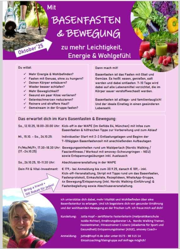 Dann mach mit beim Kurs: Basenfasten und Bewegung