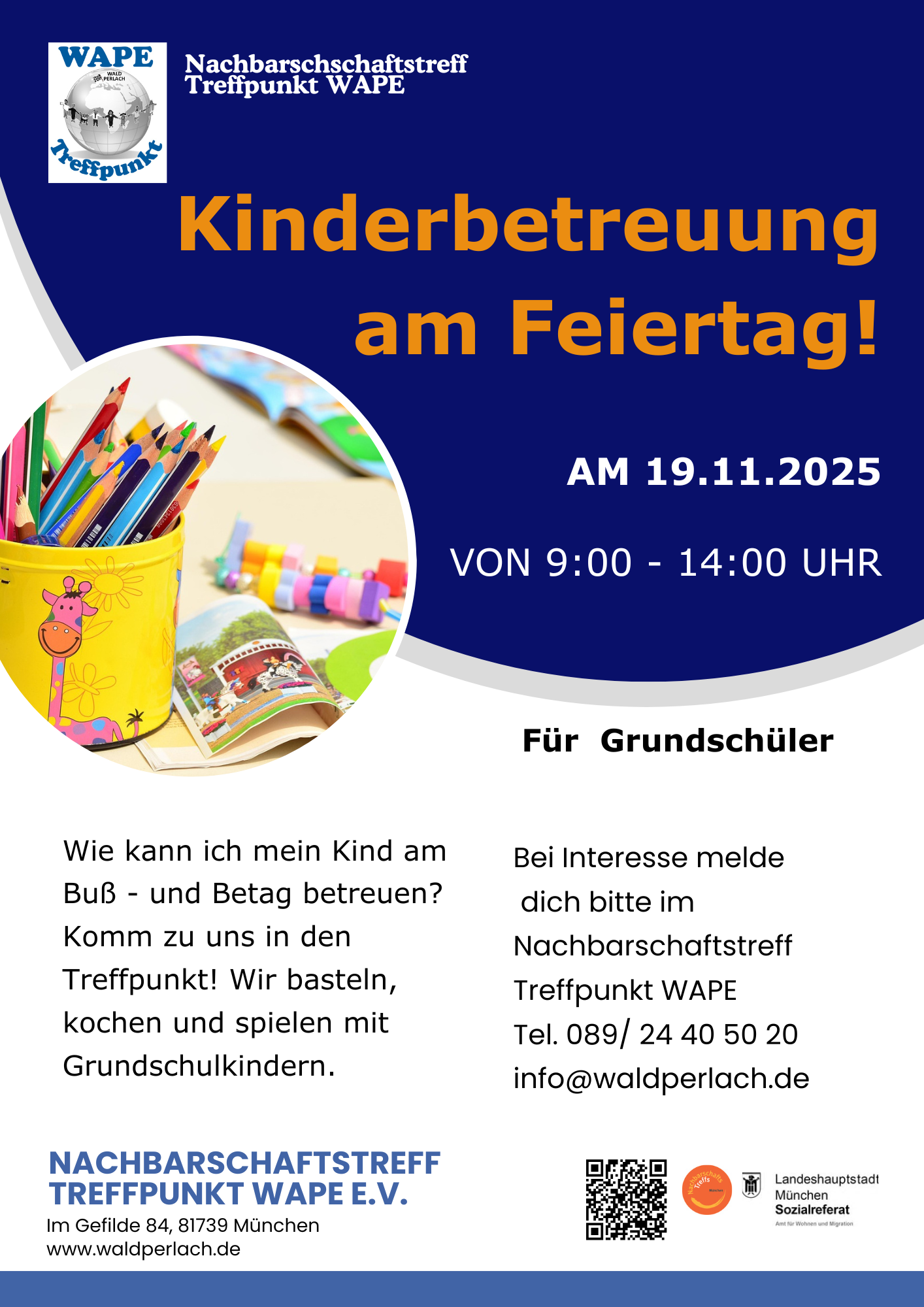 Bei Interesse melde dich bitte unter info@waldperlach.de oder Tel. 089/24 40 50 20 im Treffpunkt WAPE