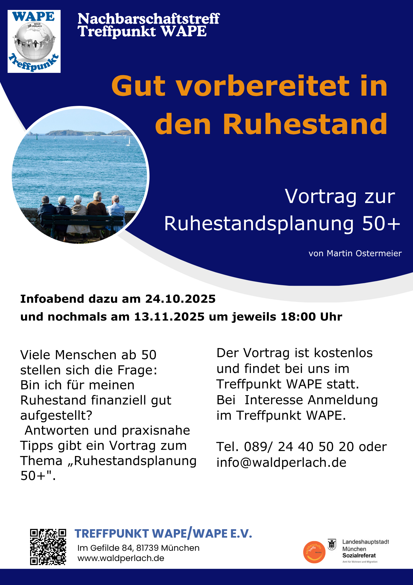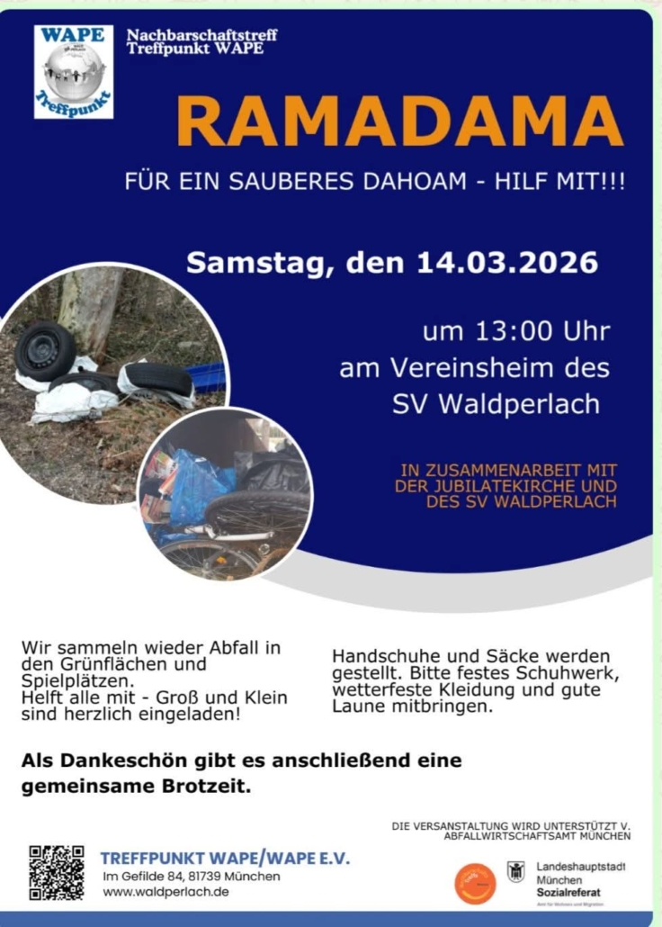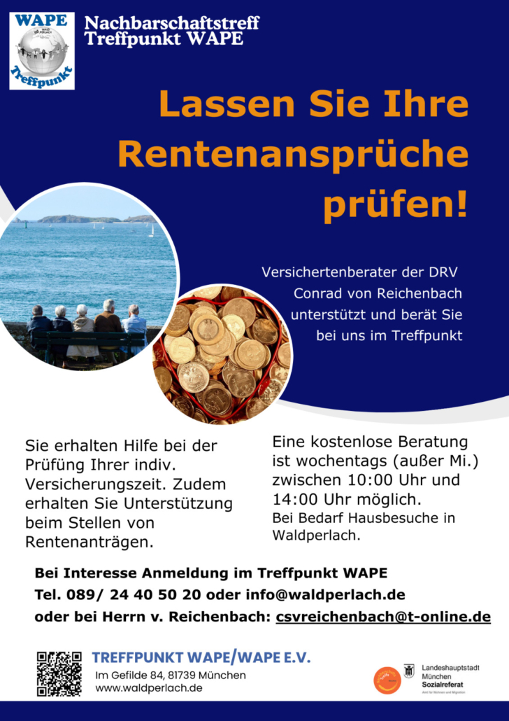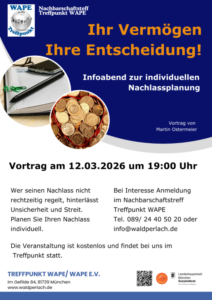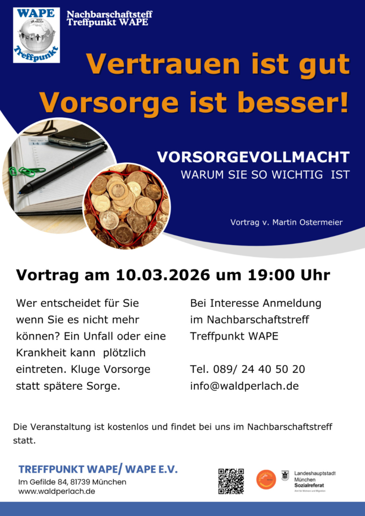 Bei Interesse Anmeldung bitte im Treffpunkt WAPE, Tel. 089/24 40 50 20 oder unter info@waldperlach.de
